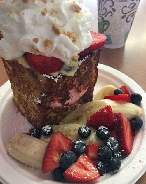 ハワイリサーチの段階で チーズケーキがまるごと入ったフォトジェニックなフレンチトーストに釘づけになってしまい、ある意味今回一番のお目当てともいえる Button Up Cafe へ 。