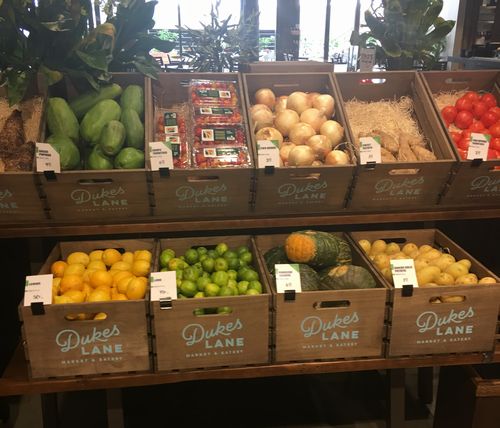 野菜、果物類も ホールフーズチックにディスプレイ。そしてどれもこれもハワイ産のようです。この木箱もかわいい。