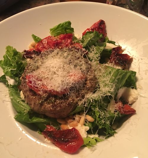 モッツァレラチーズやドライトマトなどが入った イタリアンな感じのバーガーサラダ。