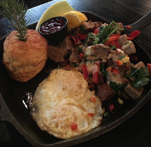 画像で見ると こじんまりとした感じだけど 料理がのっているスキレットもけっこうな大きさだもの(1辺20cmは超えていたような)。