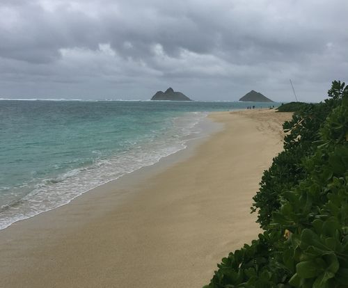 ラニカイビーチへ続く小道も 天気がどんよりしているだけで なんとも物悲しい雰囲気です。
